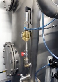 АСУ ТП обязательно включает в себя автоматическое управление поворотными затворами с пневмо-приводами. Пневмо-управление при помощи безмасляного компрессора.