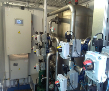 АСУ ТП обязательно включает в себя автоматическое управление поворотными затворами с пневмо-приводами. Пневмо-управление при помощи безмасляного компрессора.