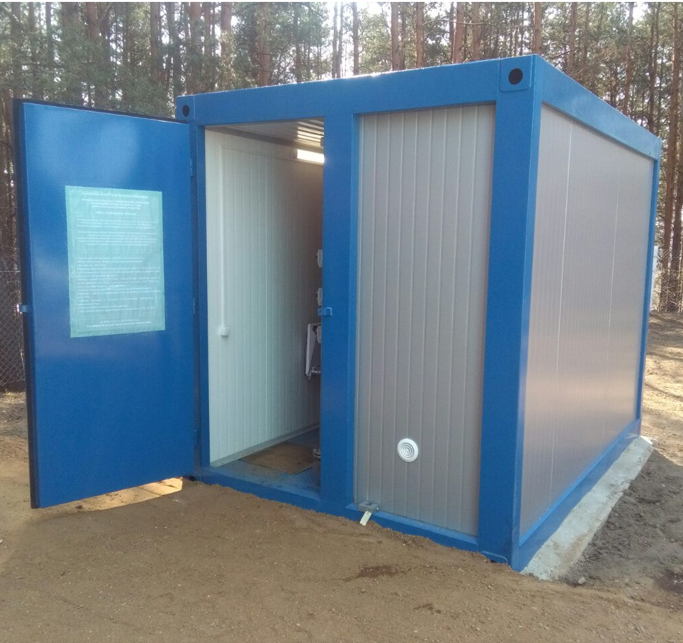 Контейнер-модуль станции — каркас из профильной трубы не менее 120х60х3(4) мм. Установка сэндвич-панелей не менее 100мм изнутри каркаса в замок. Пол-потолок — каменная вата 100 мм, влагостойкий OSB.